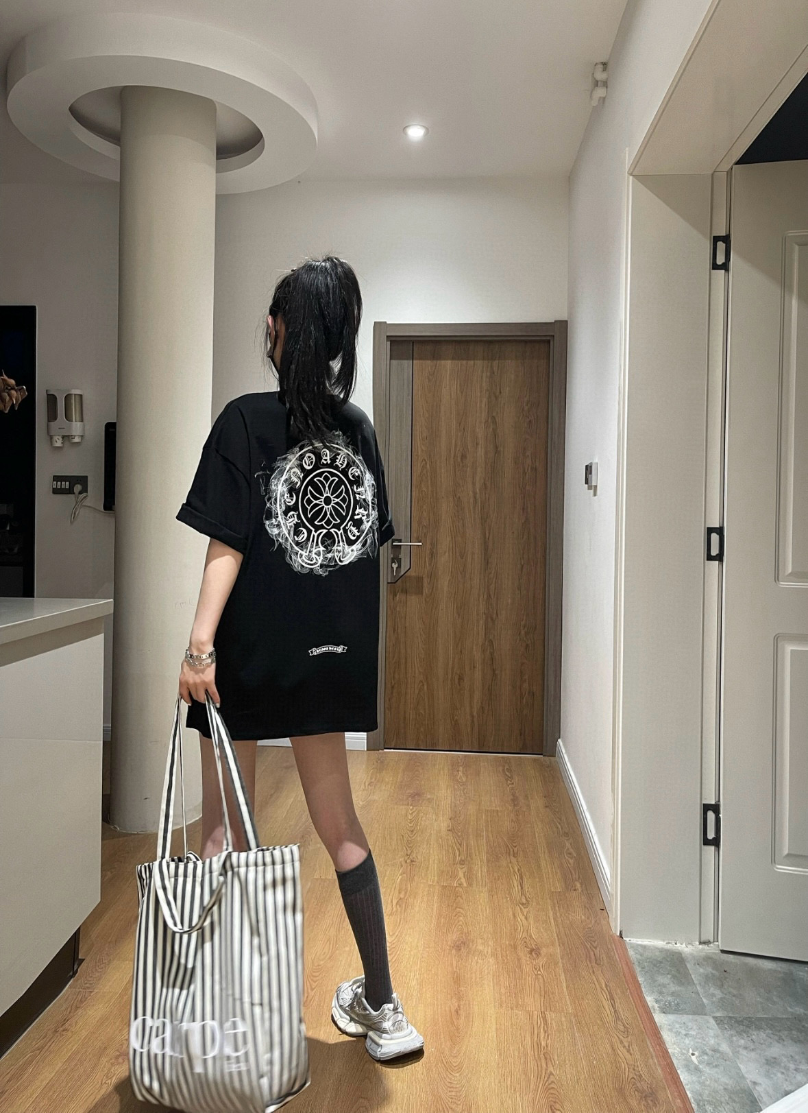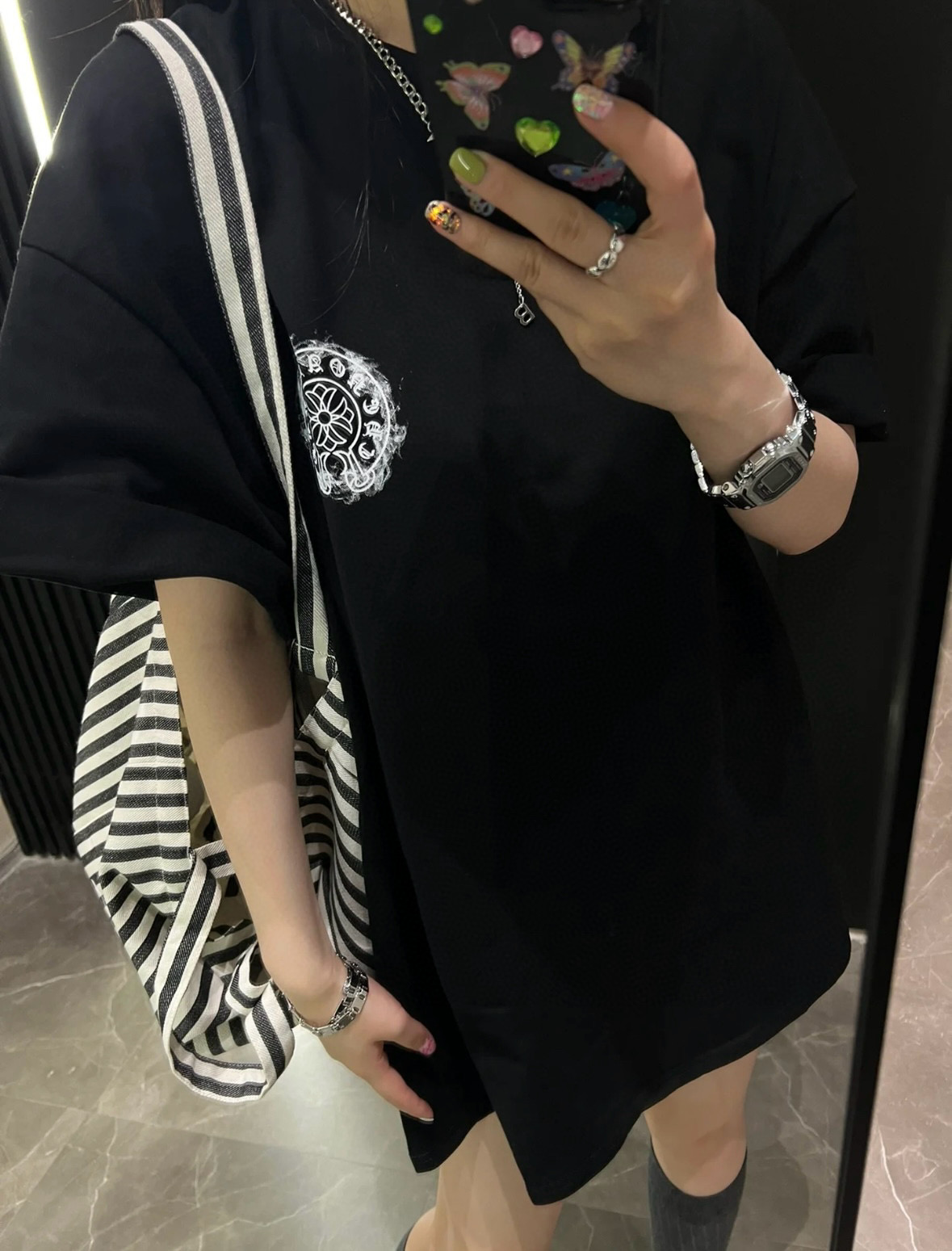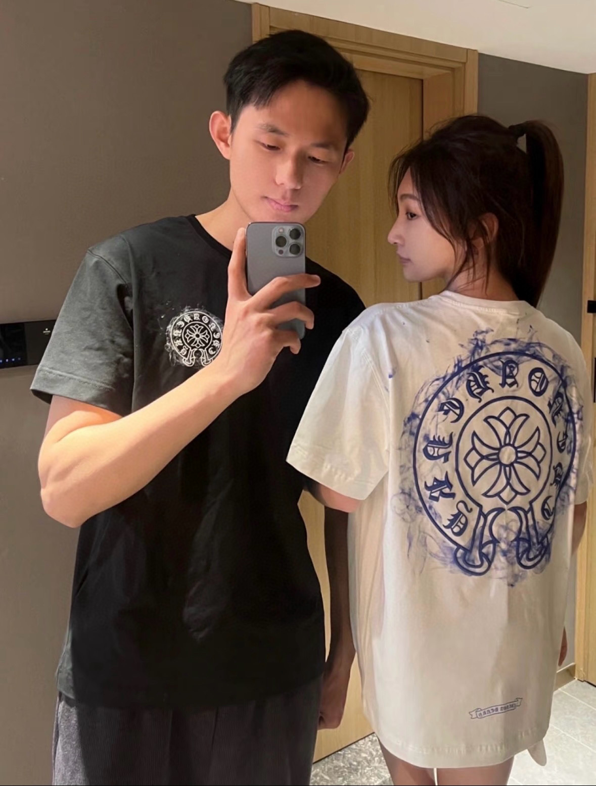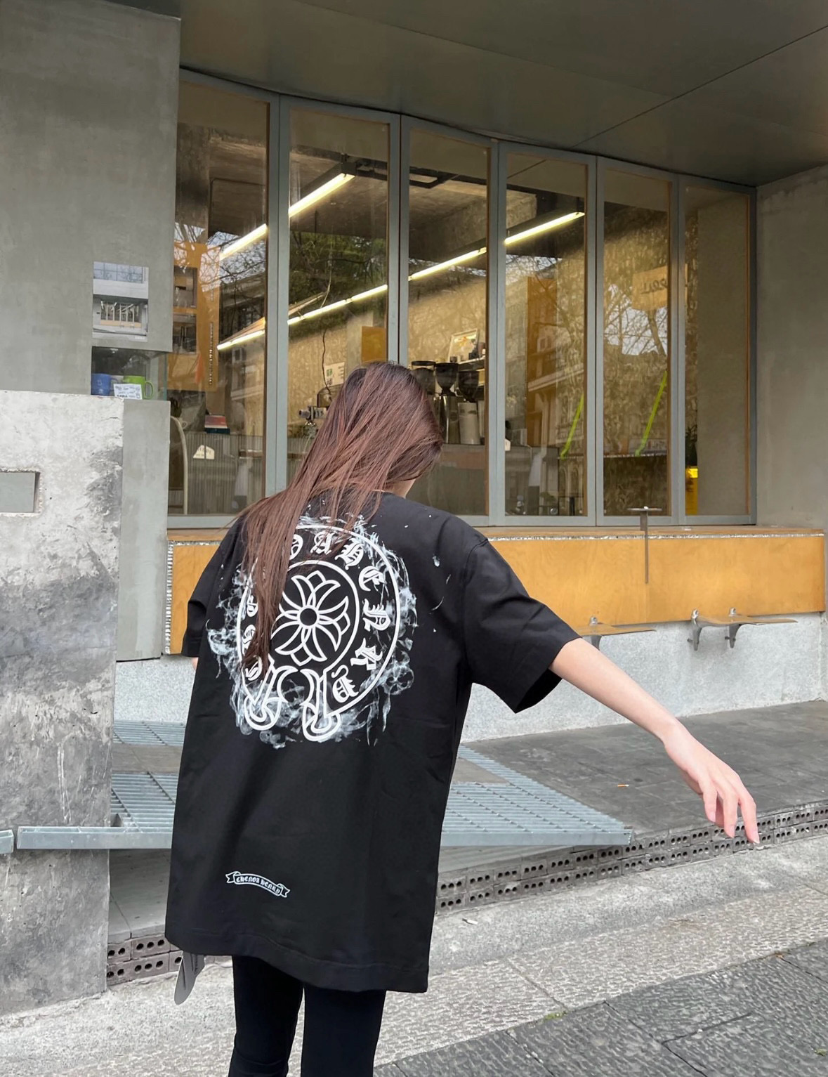 Chrome hearts CH/ Chrome Hearts 25ss logo smoke print logo round neck short-sleeved top set