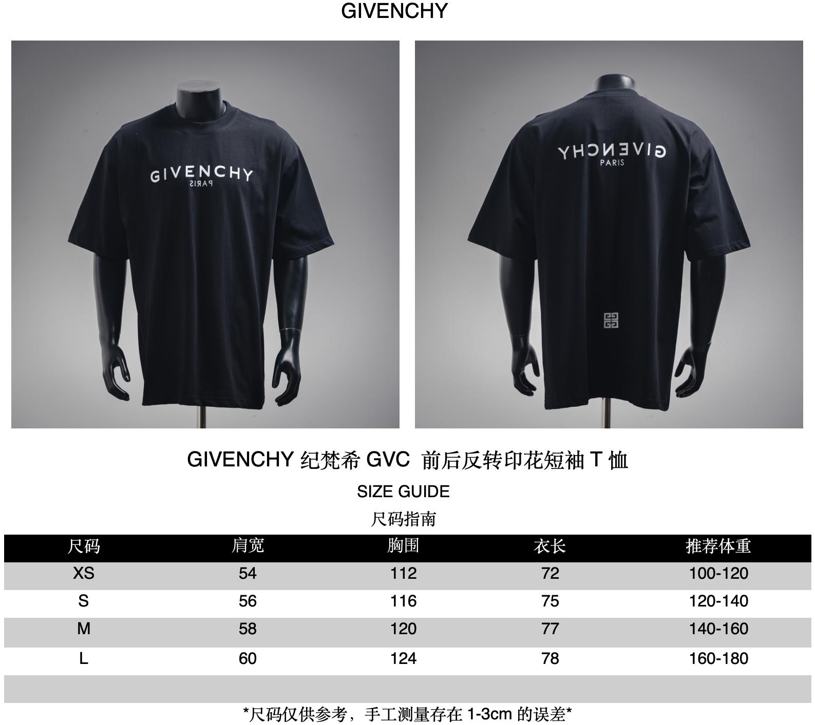 GIVENCHY GVC front-back inverted print short-sleeved T-shirt size recommendations