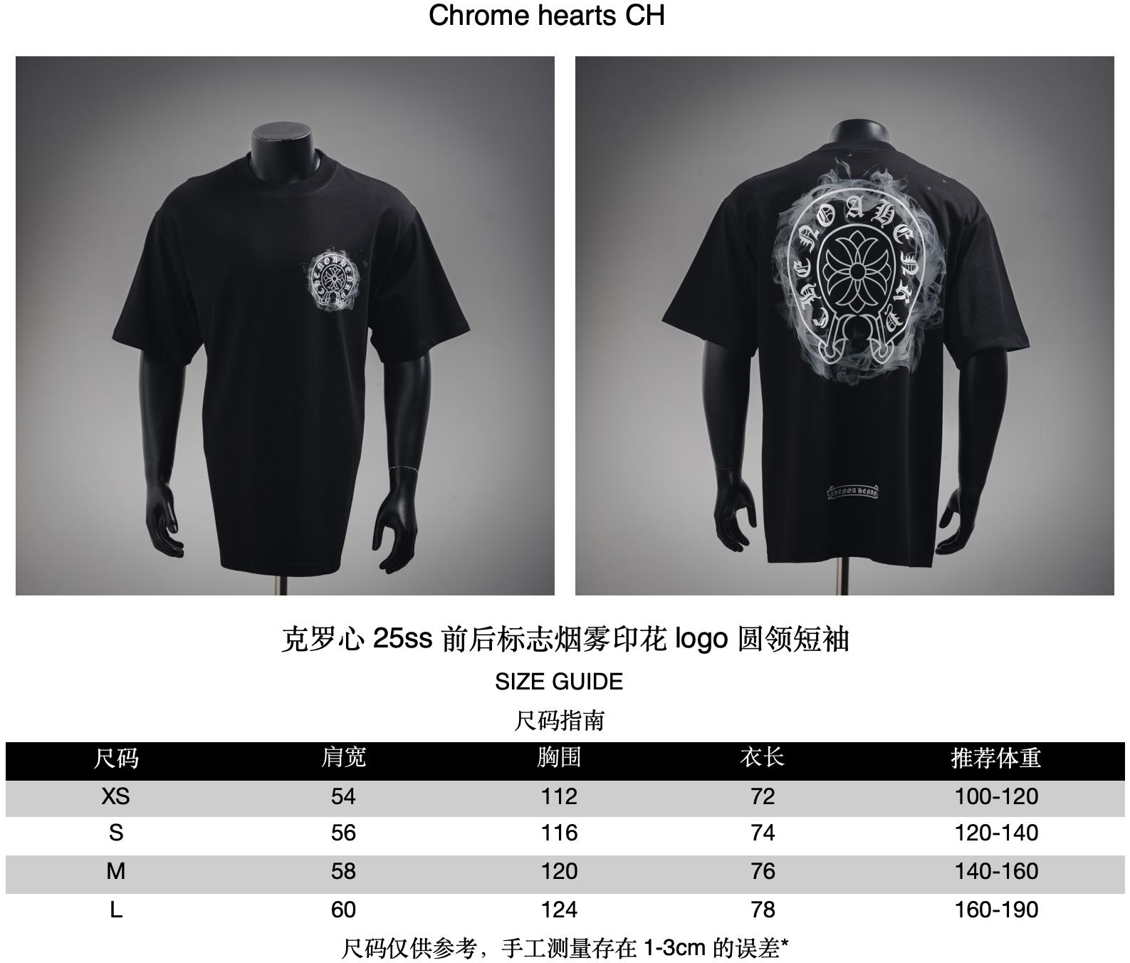 Chrome hearts CH/ Chrome Hearts 25ss front and back logo Smoke print logo round neck short sleeve size recommendation