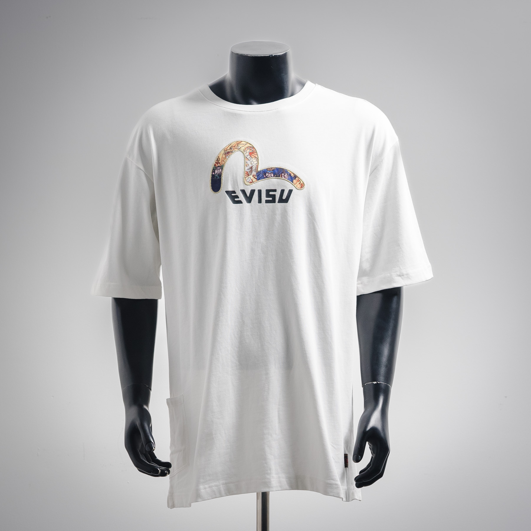 In-stock fine repair with year-round after-sales service Evisu Fu Shen genuine Men's Brocade Seagull multi-bag Black short-sleeved T-shirt