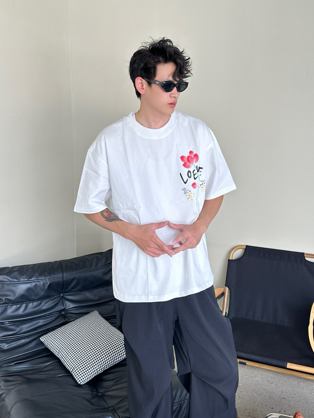 #Loewe/ LoeWE 25ss floral print short-sleeved top wearing effect