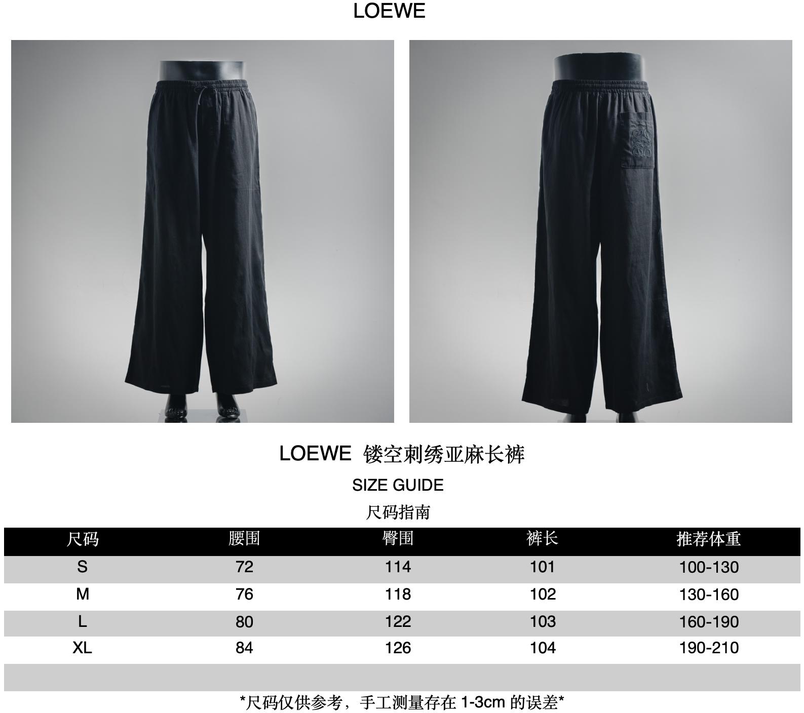 LOEWE Anagram hollowed-out embroidered linen trousers size recommendations