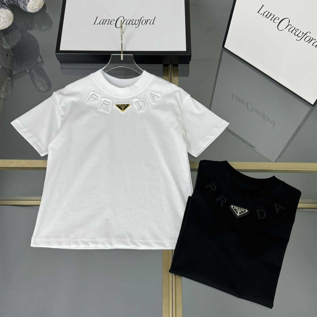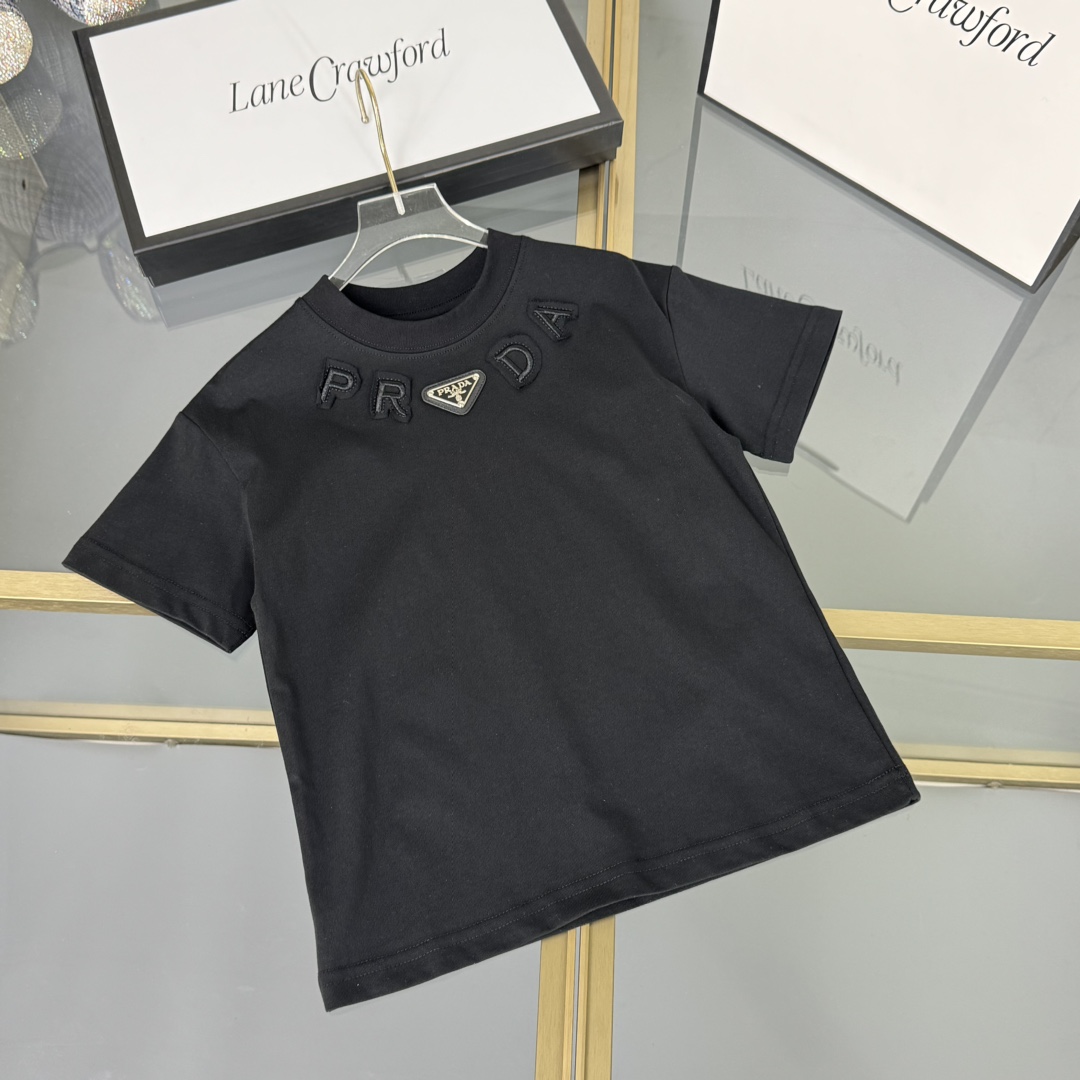 Prada, high-end children's clothing, T-shirts for boys and girls, pure cotton fabric, comfortable and good-looking when worn, size: 100/110/12/130/140/150cm