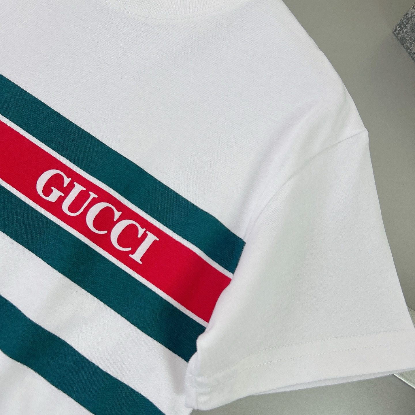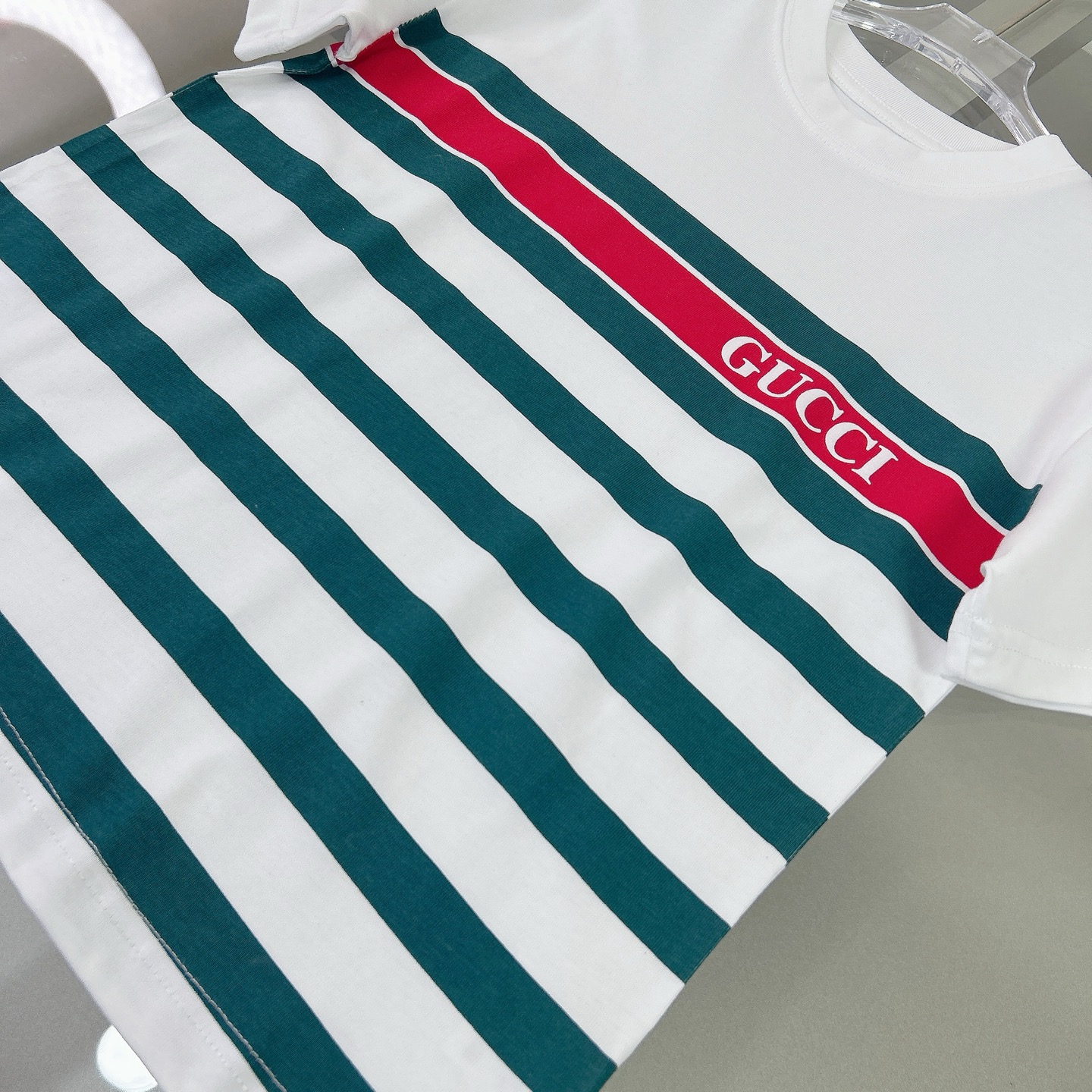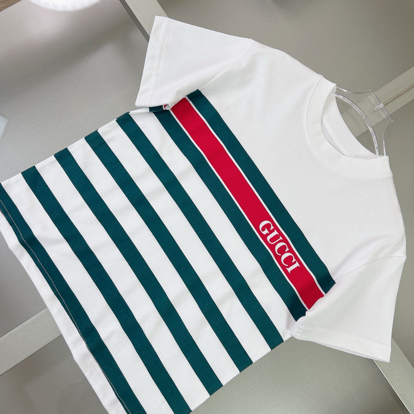 Gucci Gucci, high-end children's wear, private T-shirt, classic stripes printing craft, pure cotton fabrics, upper body comfortable, good-looking, code number: 100/110/120/130/140/150 cm