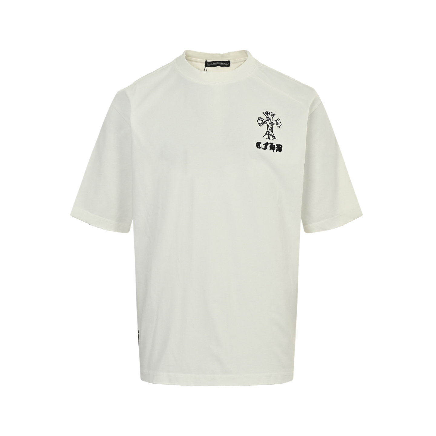 ChromeHearts 25ss Cross patch embroidery Washed Burn Flower Short sleeve The cost of a large patch of custom-made fabric with a 300-gram double-gauze back is extremely high American ACID WASH AGED Original fabric LASER BURN flower ? PATCH embroidery letter EXQUISITE embroidery TOP MATERIAL TRUE Hall of quality products The cotton from Turkey is of outstanding quality. After heavy washing, the clothes are very soft and not picky about the wearer The upper body is absolutely stylish and extremely luxurious. The original mold has passed the appraisal, the collar label is 100% silk, and the washed label is 100% Genuine purchasing agent grade original tag ? Matching sling ?3D sling ? original package Colour: White, black, light green Size:S-XL