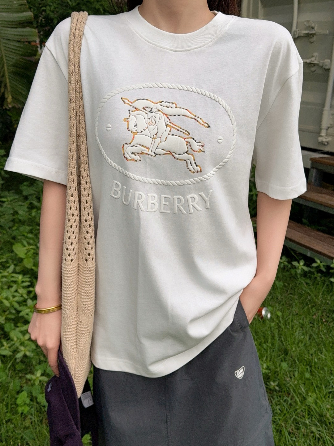 #Burberry/ Burberry 25ss Circle Warhorse foam Print short sleeve wearing effect