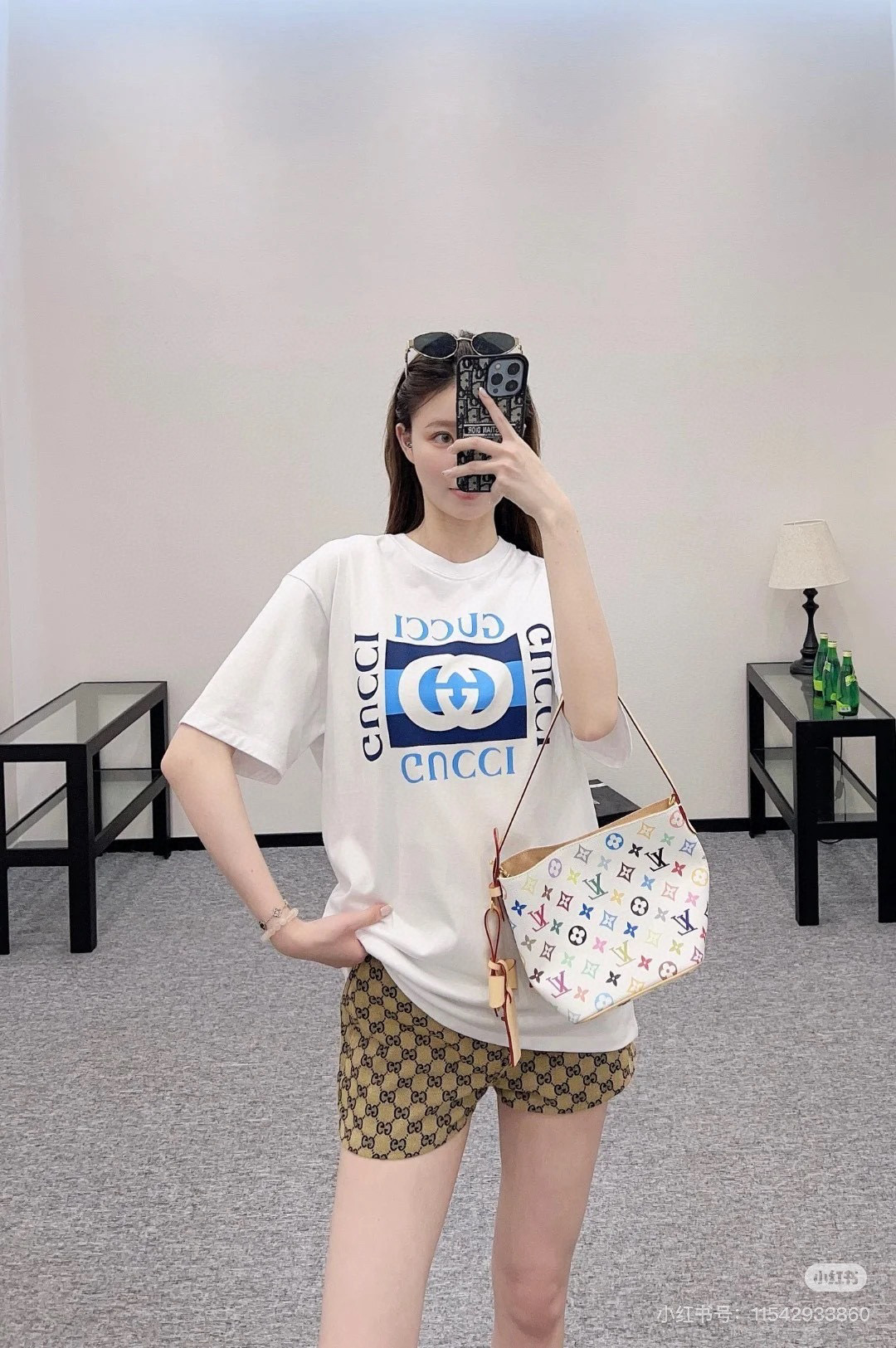 #Gucci/ Gucci 25ss Double G square logo print short sleeve effect
