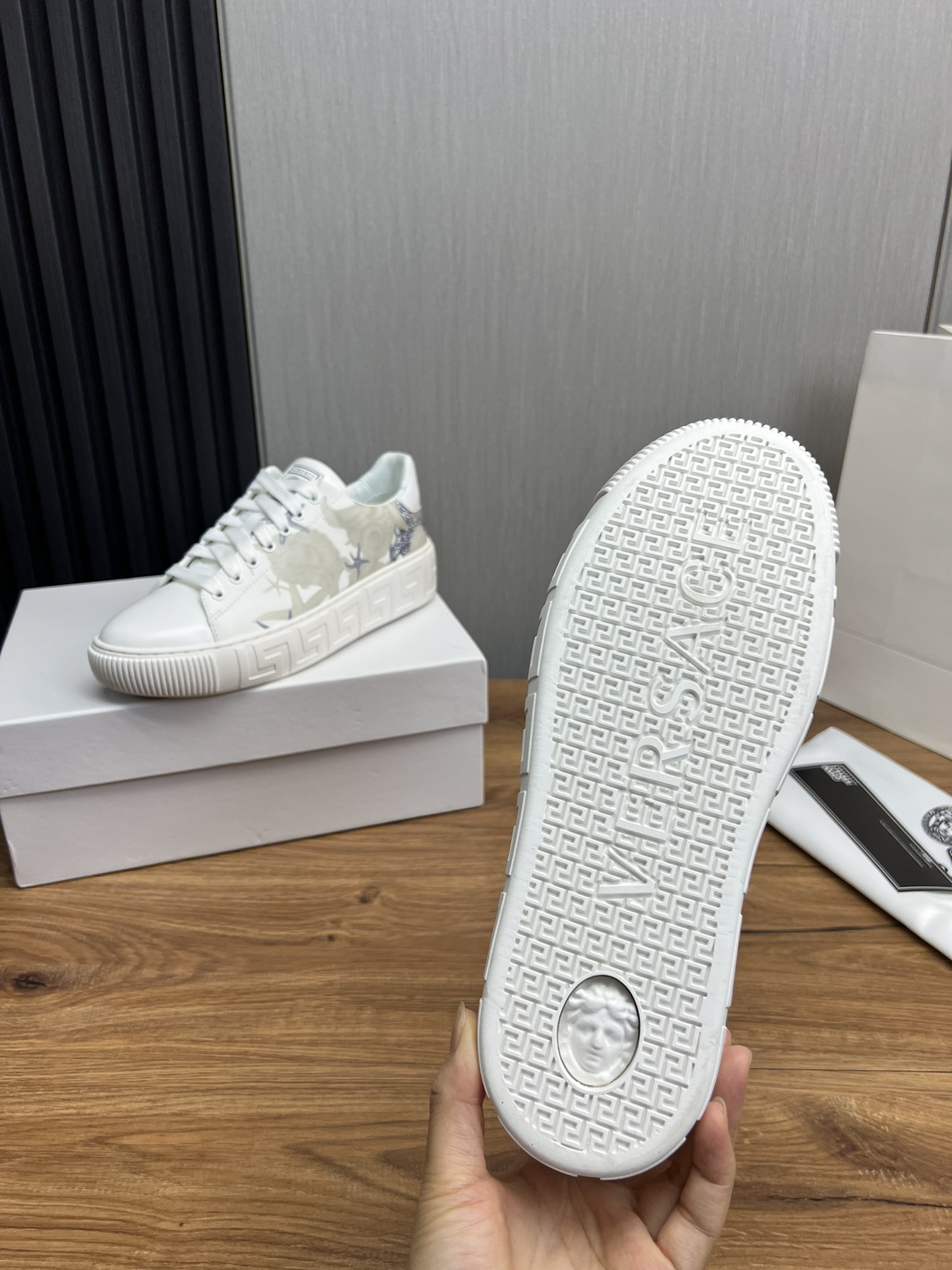 Style #3005?????? VERSACE fashion leather couple casual shoes ?? Year-round bestseller ?? Fabric: Top-grain cowhide Inside: The inside of sheep's skin Original outsole mold outsole Size :36-45 (Custom-made 45 is non-returnable and non-exchangeable)