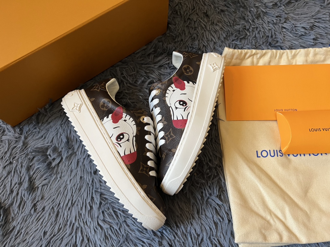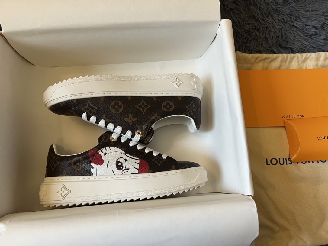 ???? Louis Vuitton Time Out 24 Spring/Summer new sneakers give sneakers ELEGANT and HIGH-END style Easy height increase simple and versatile selected calfskin material water-dyed sheepskin lining TPU outsole Size:35-41