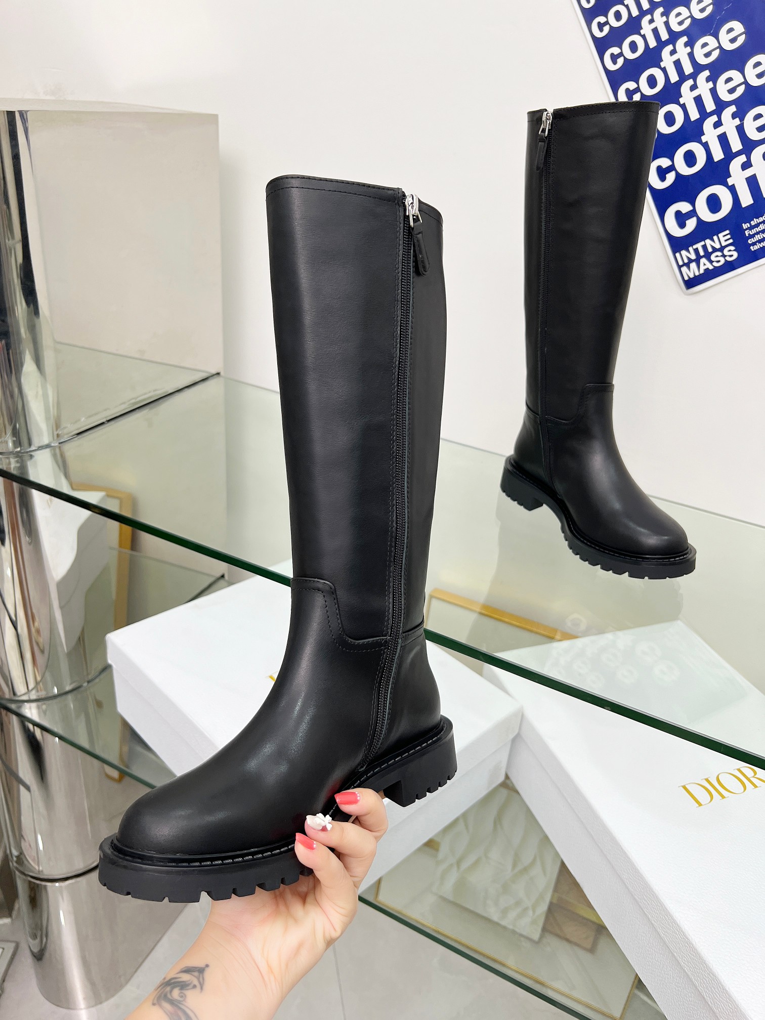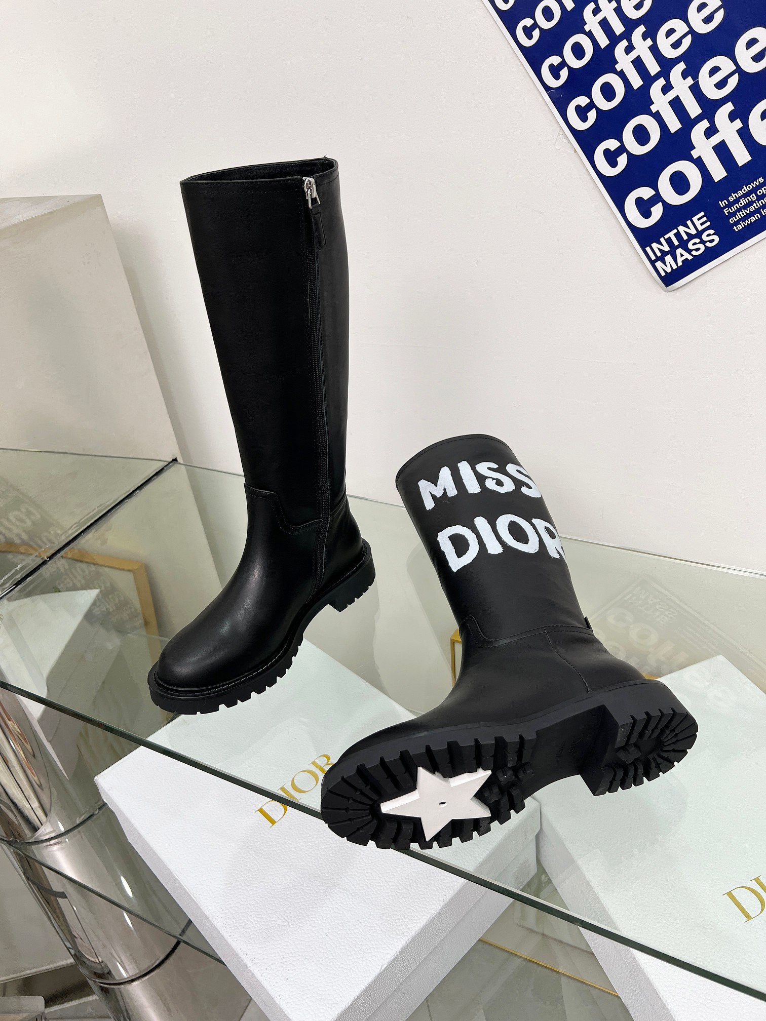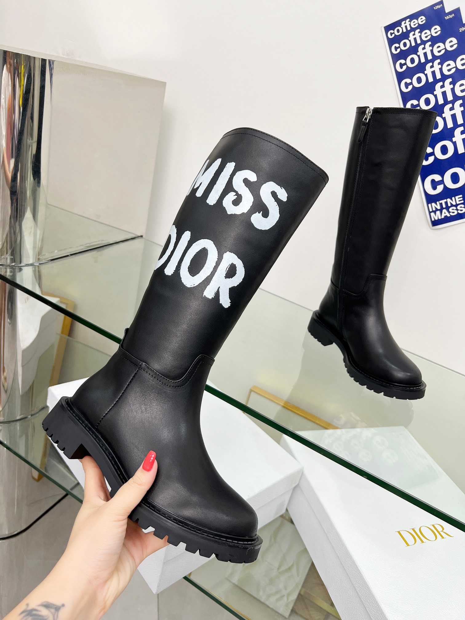 ???? Dior. Classic riding boots. MISS DIOR 3D printing effect. It shows off your feet perfectly when you wear it. Inner zipper design. Imported top-grain cowhide. The inner lining is sheepskin. Code size: 35-41