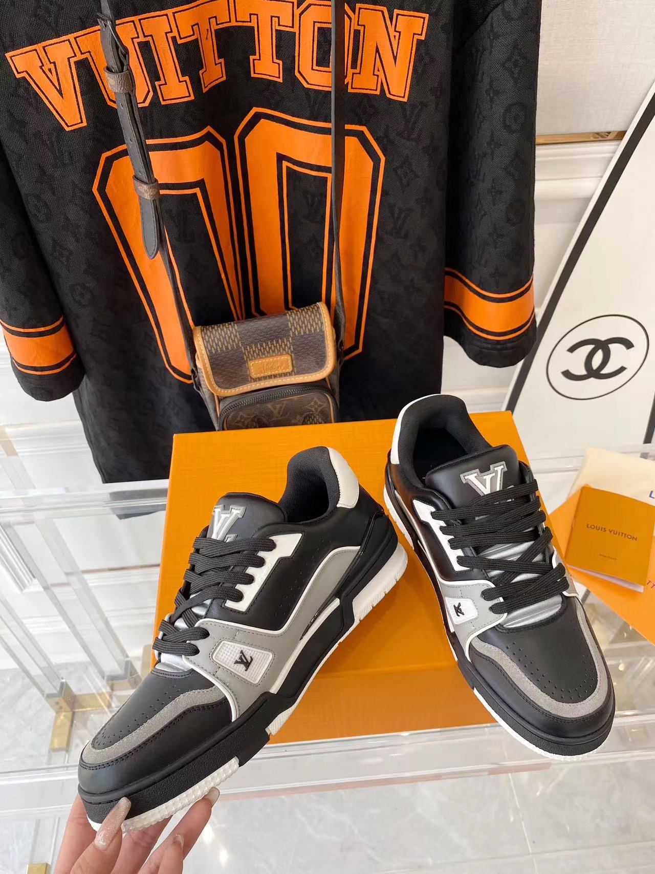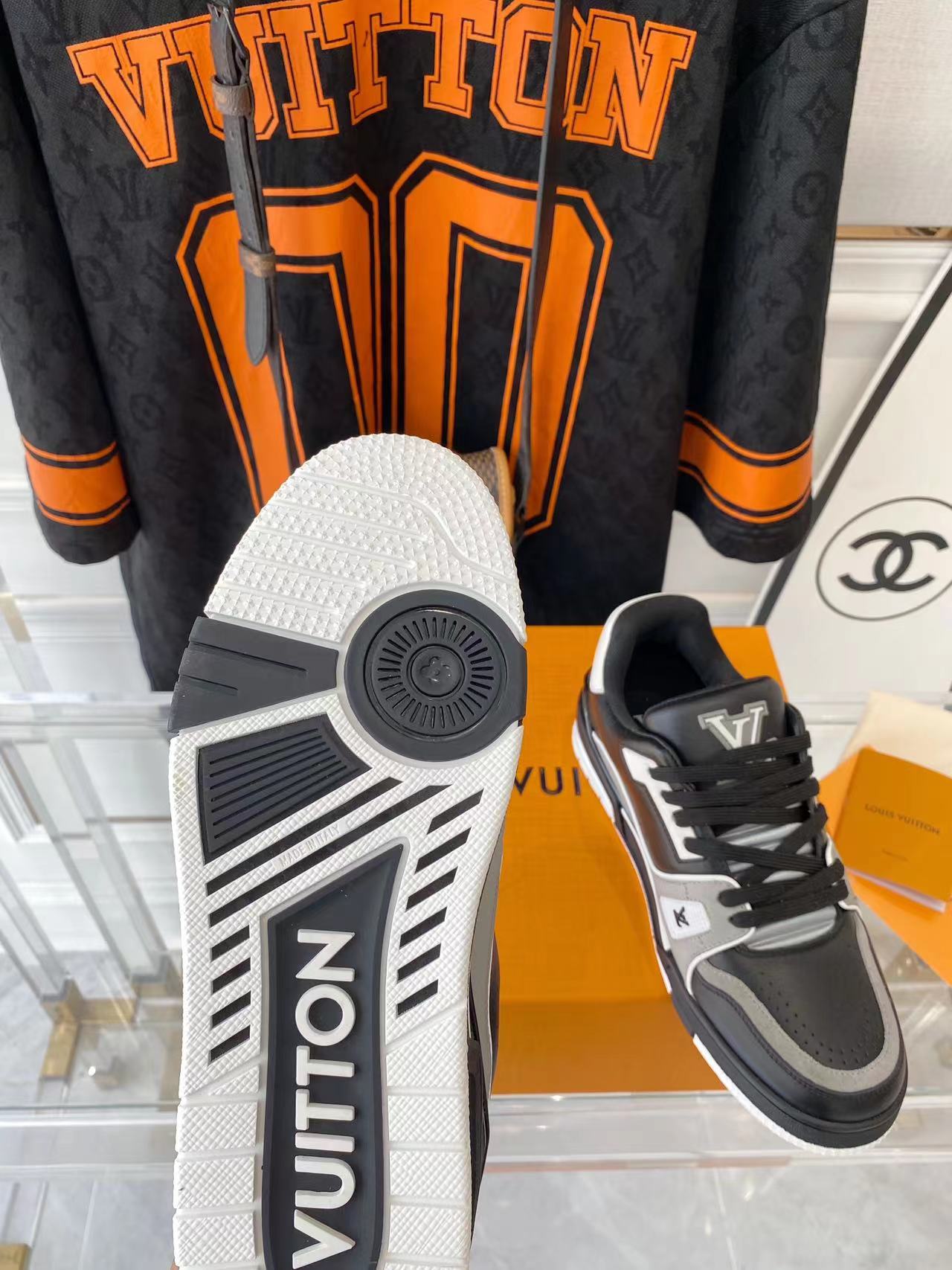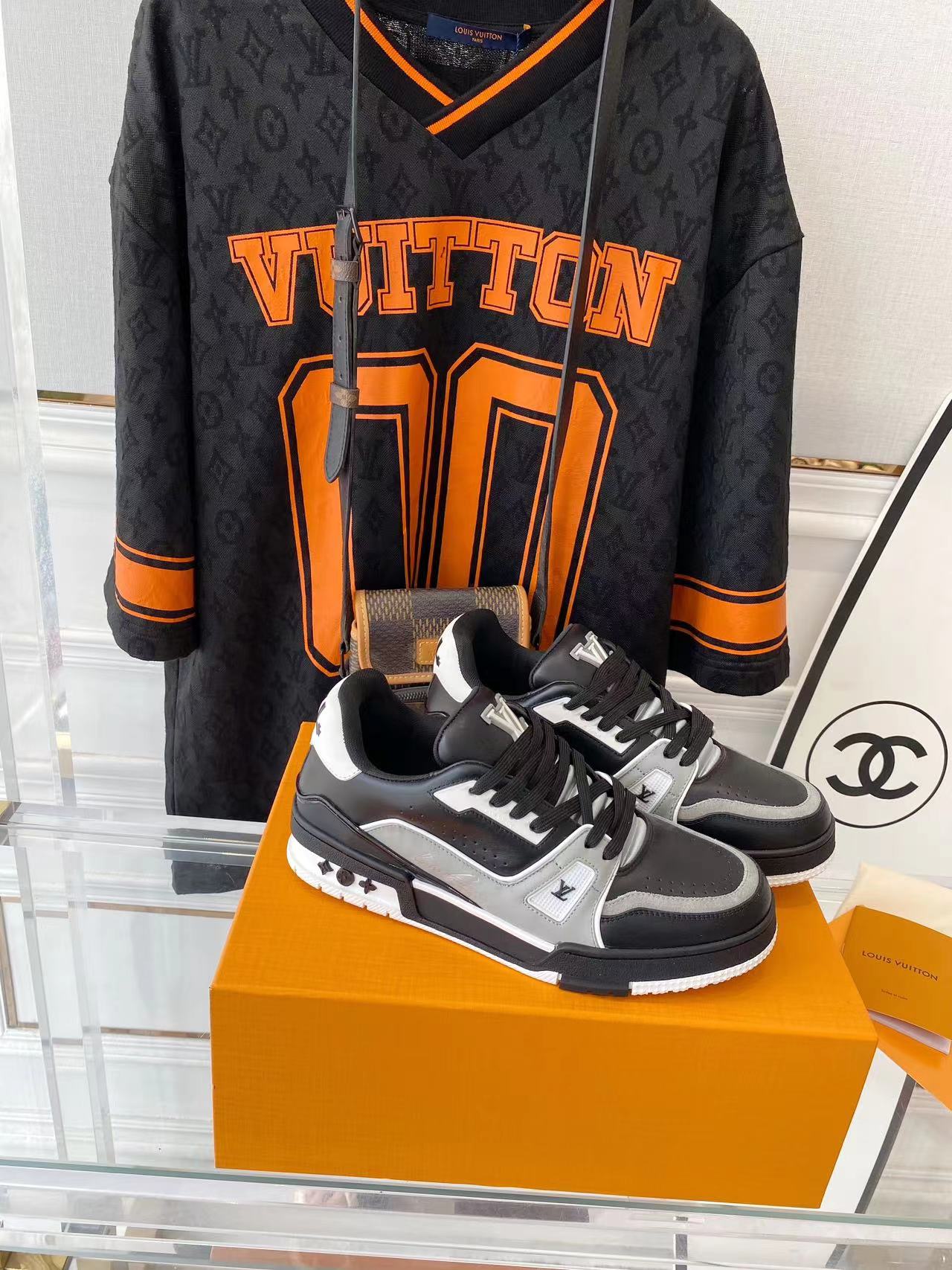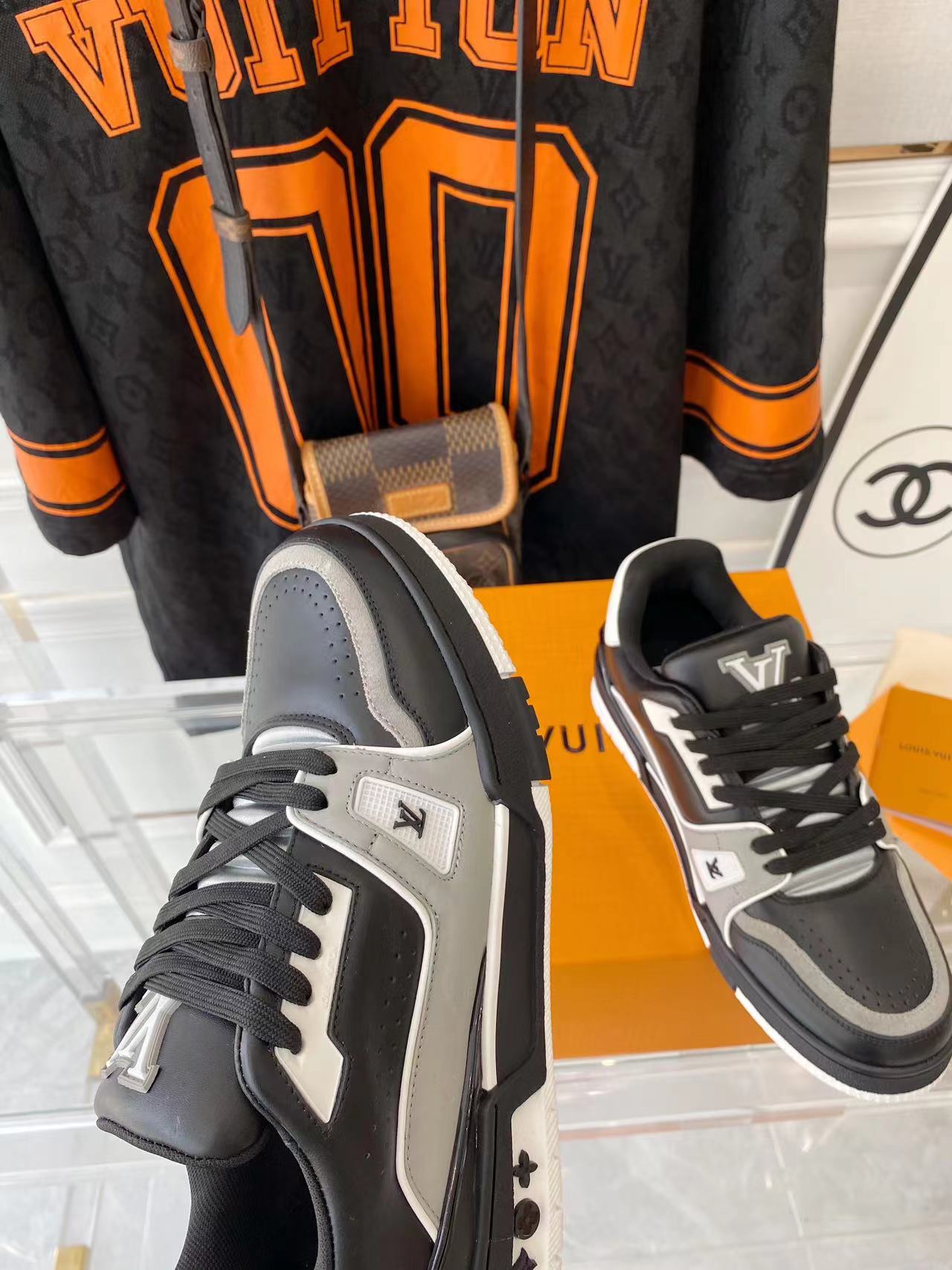 ???? ??L. The ??TRAINER sneaker, a favorite of Virgil Abloh, the artistic director of men's wear, is made of Monogram embossed calfskin and has a mesh lining. The innovative TPU 3-color outsole is decorated with Monogram flowers.