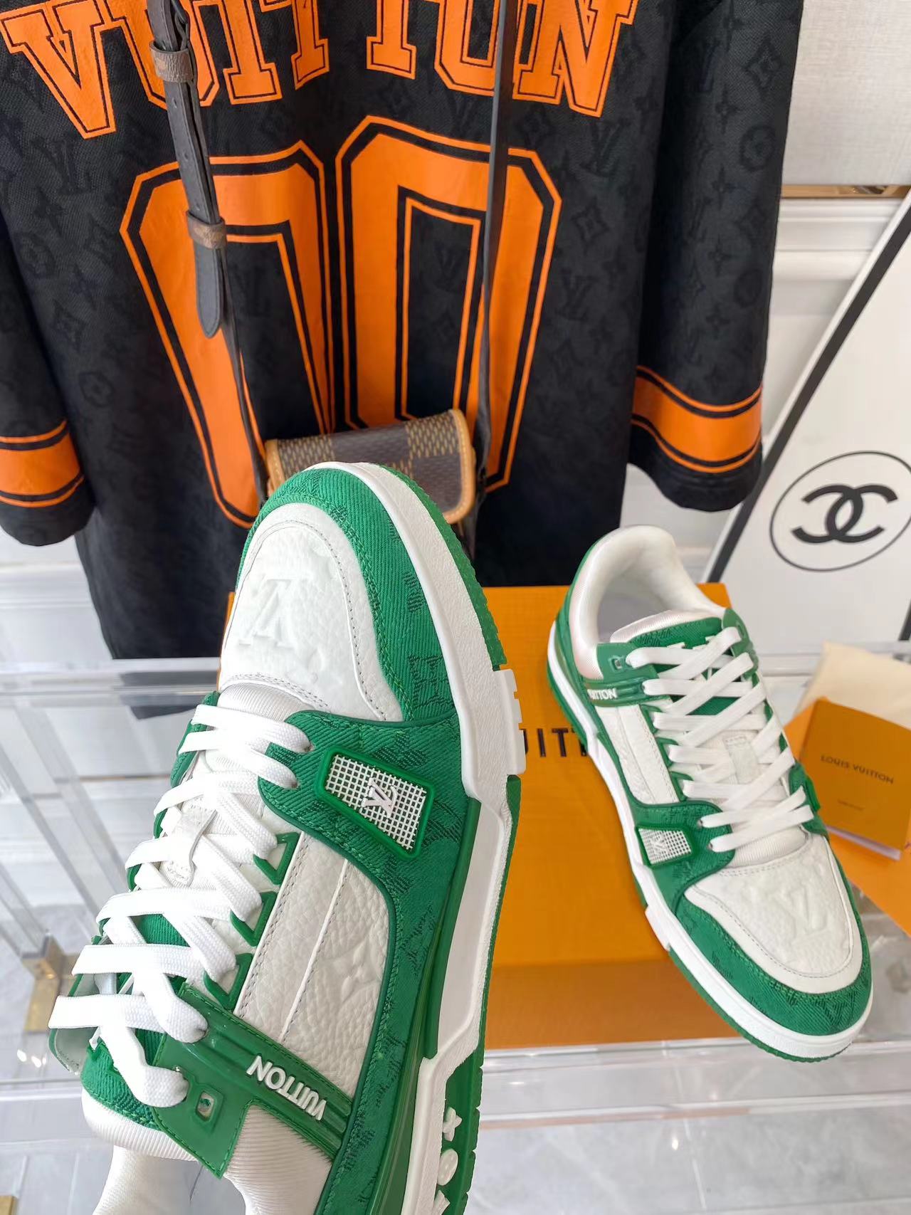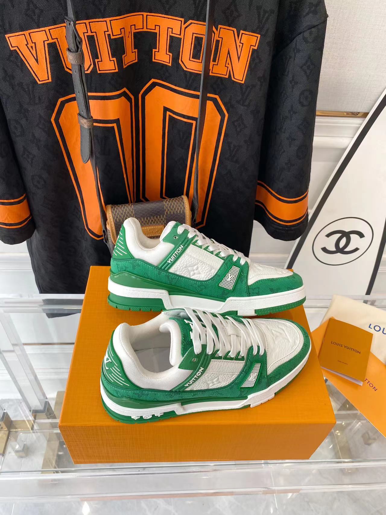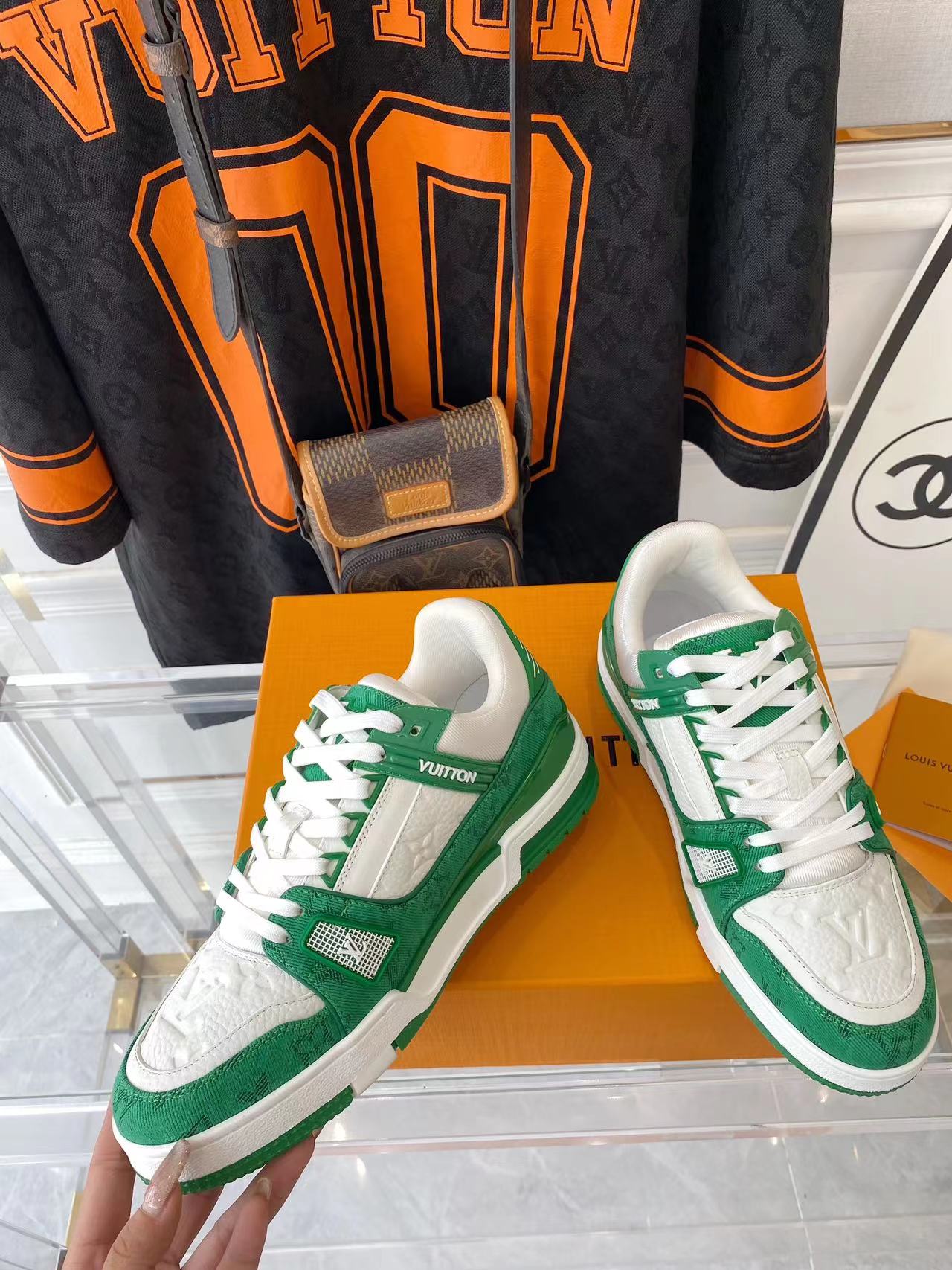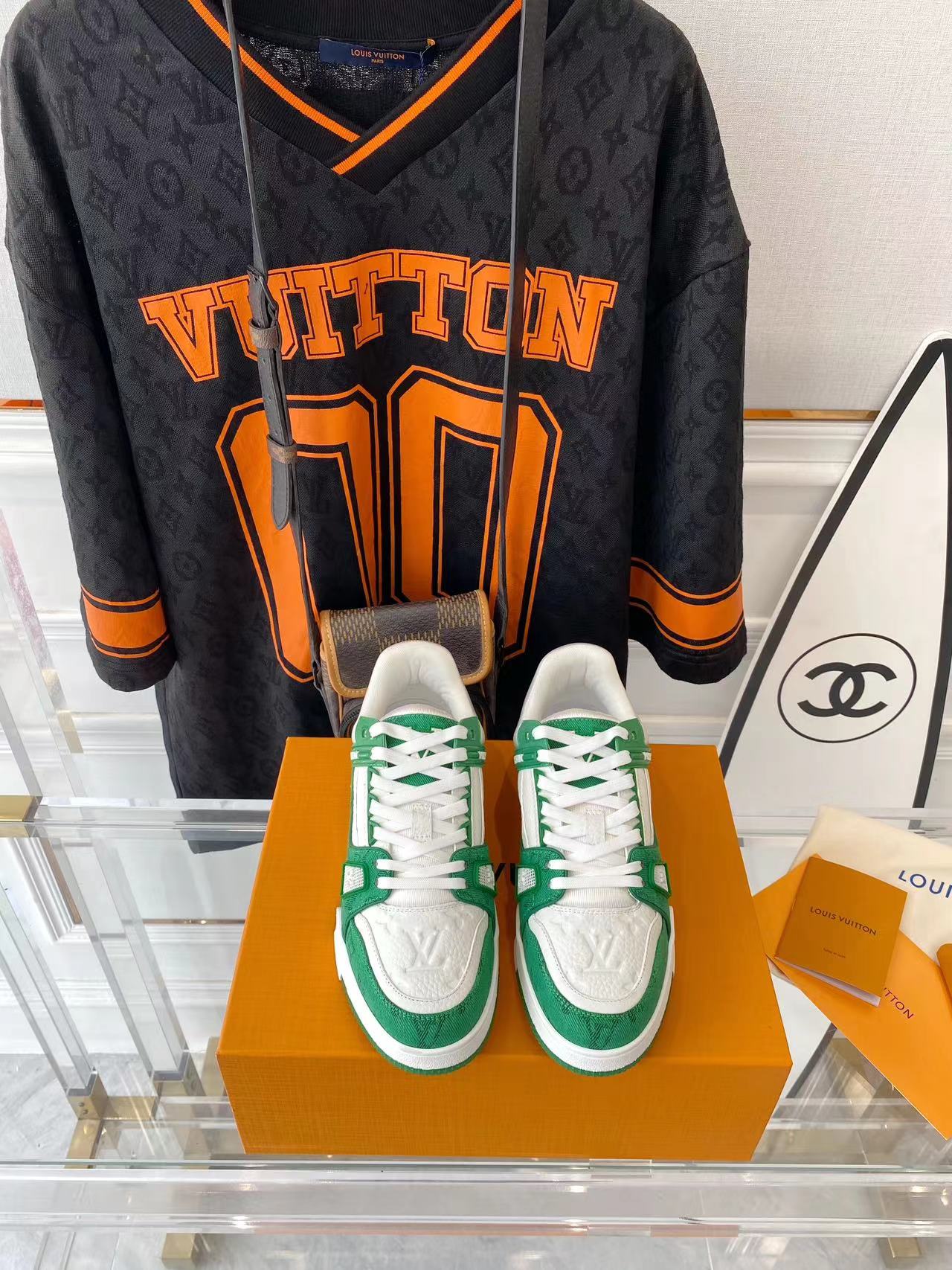 ???? ??L. The ??TRAINER sneaker, a favorite of Virgil Abloh, the artistic director of men's wear, is made of Monogram embossed calfskin and has a mesh lining. The innovative TPU 3-color outsole is decorated with Monogram flowers.