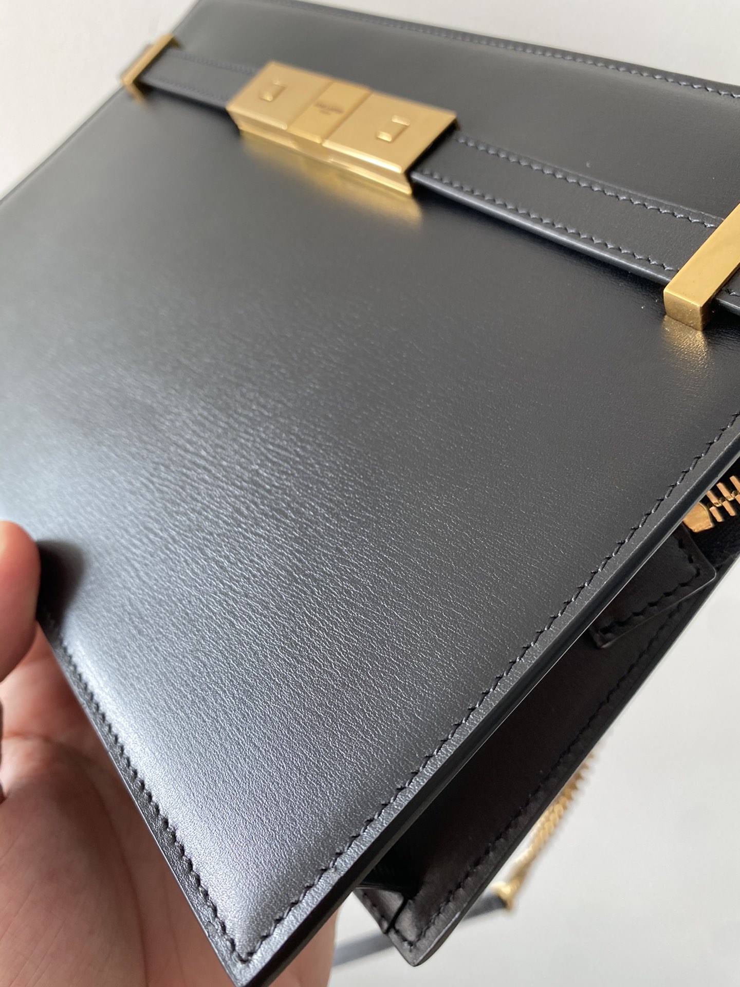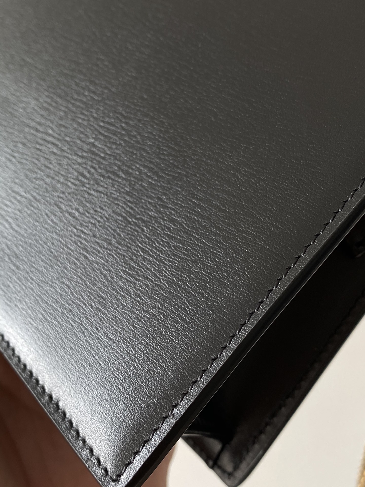 Let's take a look at the magnified details of the toothpick pattern. The overall texture is top-notch. It's made of original imported calfskin from the factory, with a specially designed effect. It's that amazing at the counter level! 1