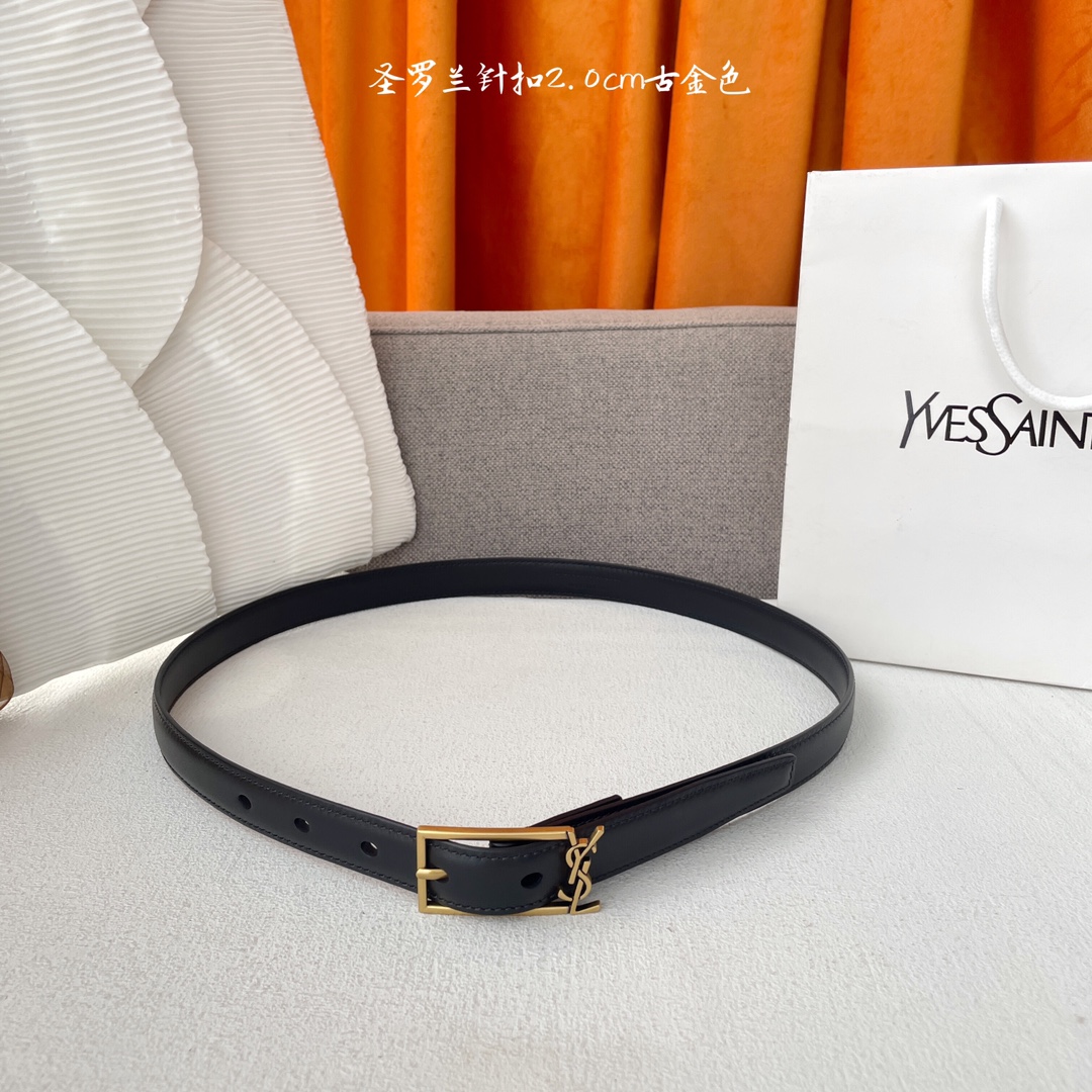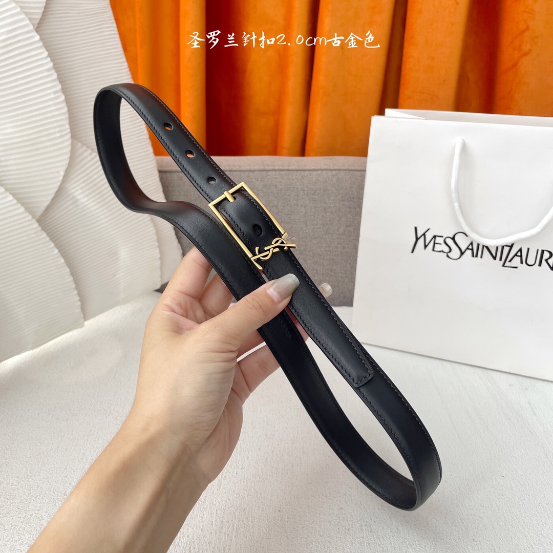 Yves Saint Laurent YSL classic plain weave top-quality calfskin soft belt 2.0cm square needle copper buckle brand logo belt ring is a must-have for fashionyans and never gets tired of looking at it