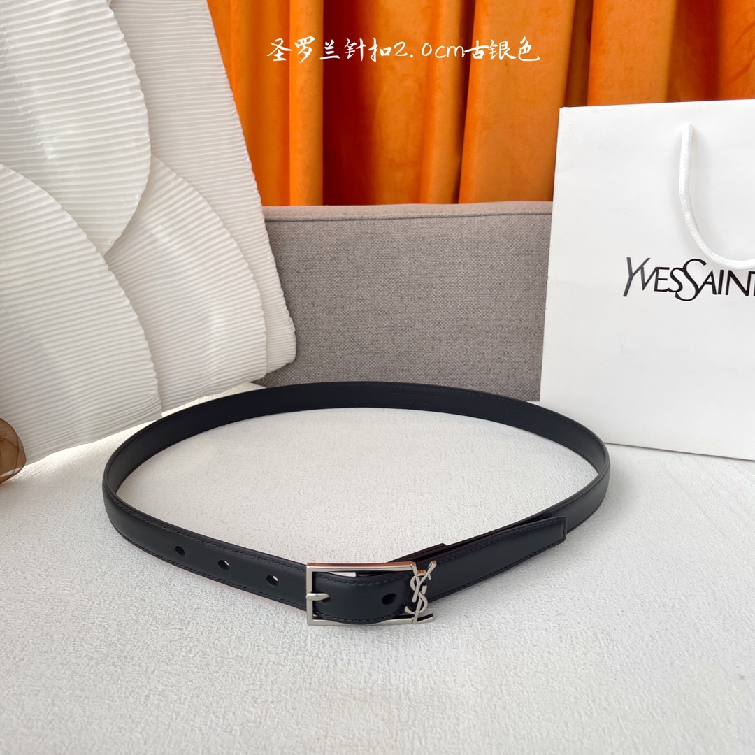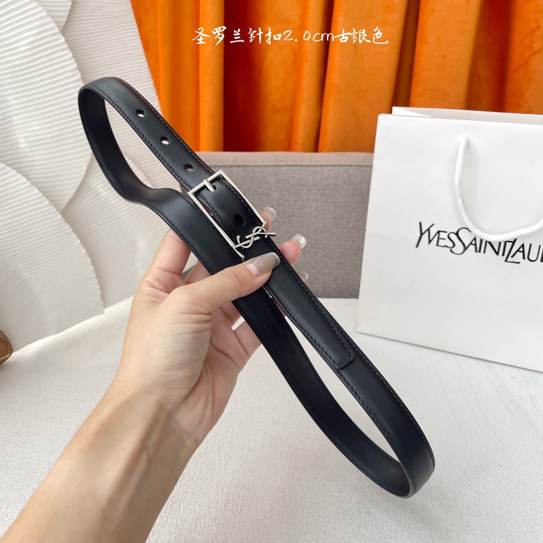 Yves Saint Laurent YSL classic plain weave top-quality calfskin soft belt 2.0cm square needle copper buckle brand logo belt ring is a must-have for fashionyans and never gets tired of looking at it