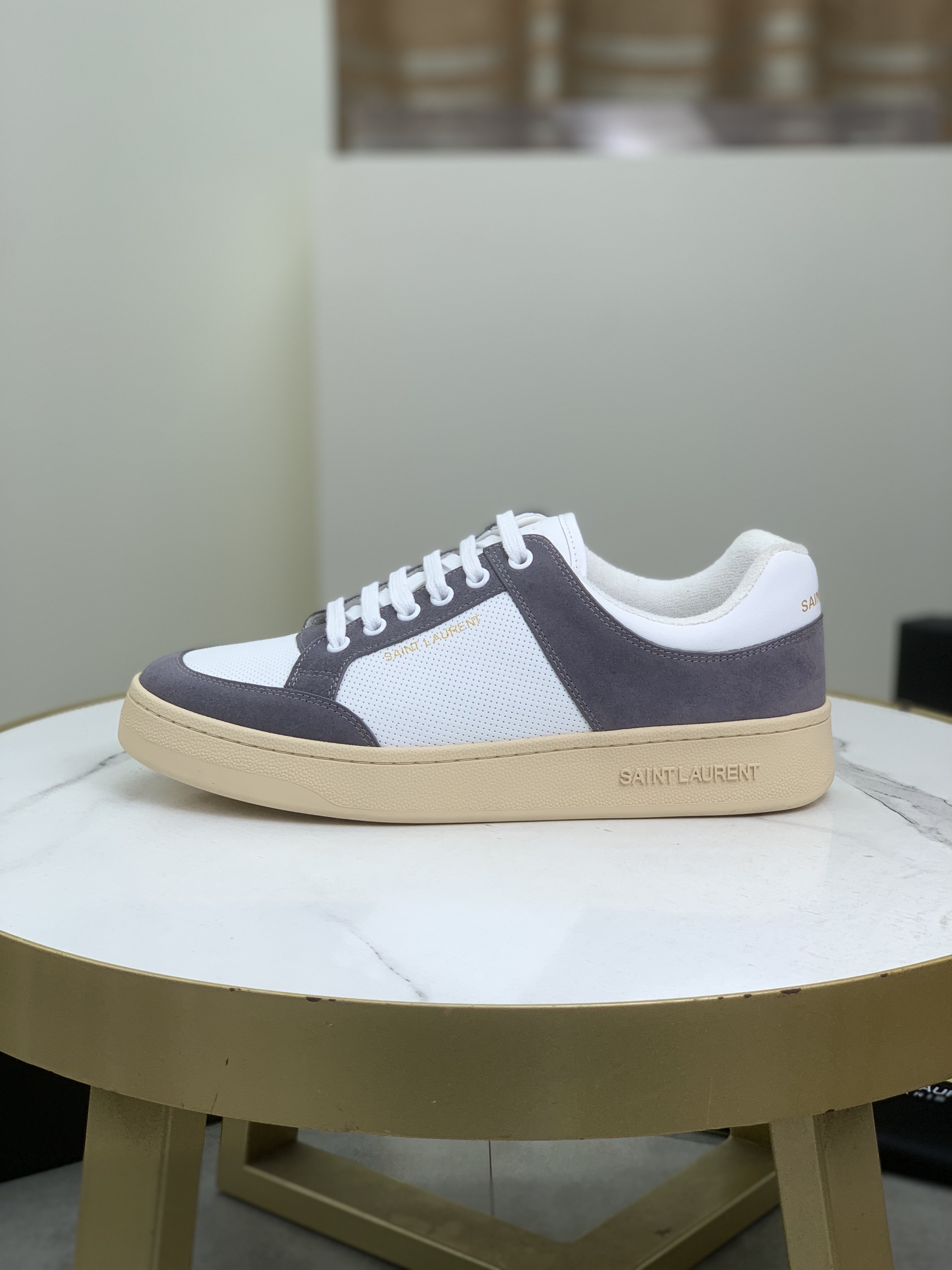 Model No. #3009?????? SAINT LAURENT low-top lace-up sneakers The new brand flagship store of S/L61 is now available on its official website. It features Italian original grain cowhide and front trim with perforated leather. The tie strap is decorated with the golden SAINT LAURENT logo. The side is decorated with the SL 61 logo, the back is embossed with the Saint Laurent logo, and the inner part is made of Tw soft towel fabric, which further enhances the softness, breathability and support of the shoes. There is no midsole last design, and memory insole insoles are added! The foot feel is incredibly comfortable and lightweight. The eco-friendly and anti-slip rubber two-tone outsole and the true stitching around the outsole further enhance the comfort and firmness of the entire pair of shoes. Perfection speaks for itself in the details! 5 ? Color available: Size :39-44 (custom-made for 38 and 45) Original box packaging + dust-proof bag